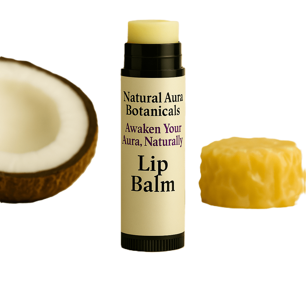 Each tube of our Natural Aura lip balm is made with four premium ingredients: rich cocoa butter, organic coconut oil, coconut essential oil, and natural beeswax. Together, they form a protective barrier that locks in moisture while allowing your lips to breathe. Coconut oil provides lightweight hydration, cocoa butter smooths rough texture, and beeswax shields lips from the elements—all without synthetic fragrances, parabens, or fillers.